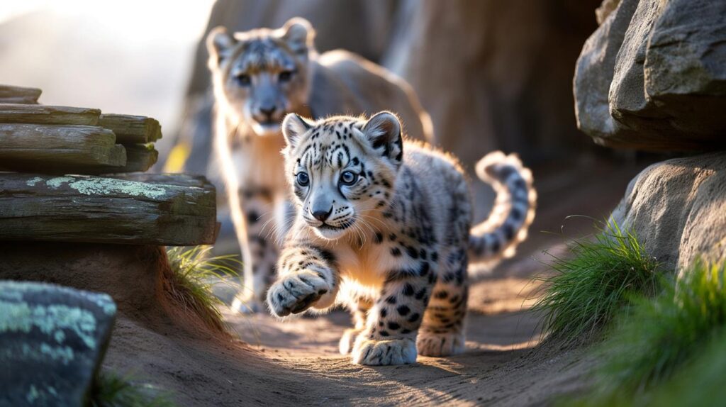 Keepers say Bheri has shown early confidence, following Nubra out of the den and testing the rocks, ramps and ledges of the enclosure. Early play has focused on pouncing, tail-chasing and careful balancing—behaviours that fine-tune a snow leopard’s remarkable agility.